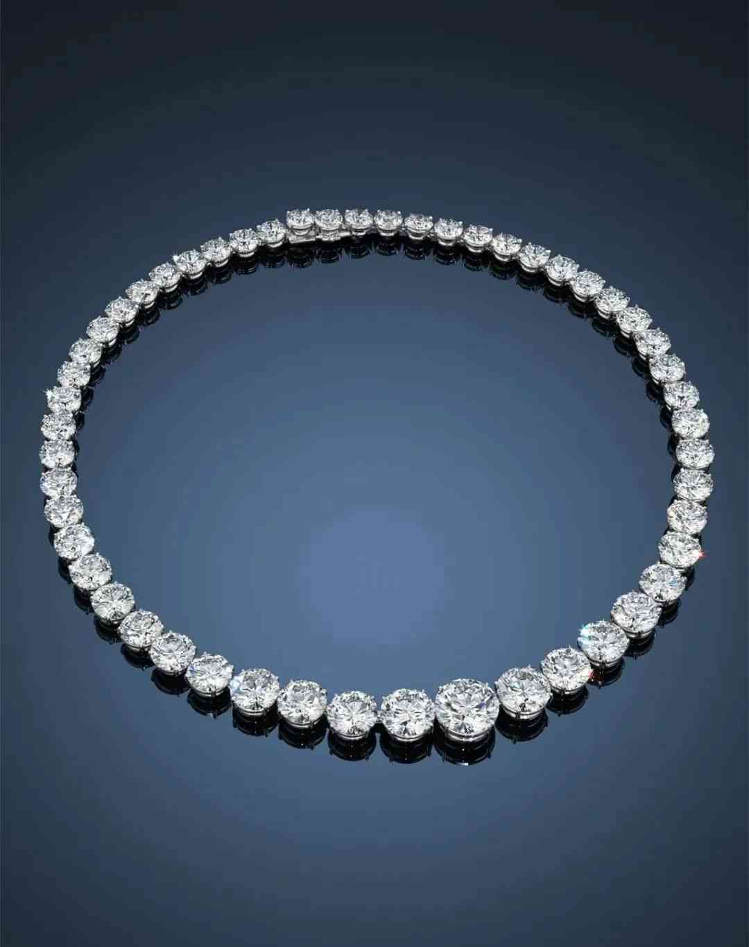 除了關(guān)之琳的私藏珠寶之外,同場拍賣中最值得關(guān)注一定就是這條總重 104.84 克拉精美鉆石項鏈,共鑲嵌 52 顆鉆石,驚人的是,這條項鏈上的鉆石顆顆都是 D 色、凈度為無瑕至內(nèi)部無瑕,切工、打磨及對稱度更是完美!鉆石重 7.14 克拉至 1.07 克拉,能夠在同一條項鏈中集齊如此頂尖質(zhì)量的鉆石實屬罕見!