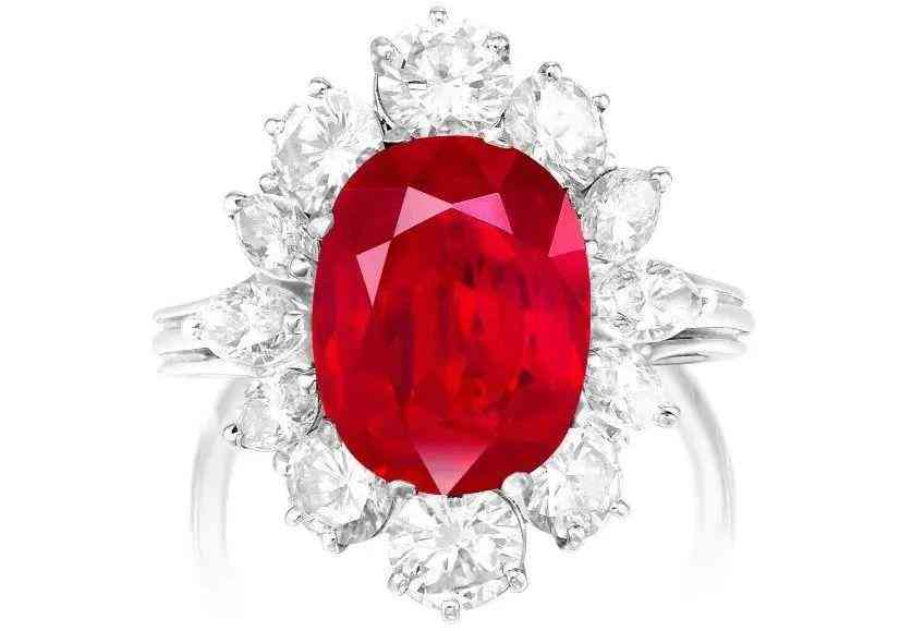 “緬甸”天然紅寶石配鉆石戒指 4.95 克拉 “珠寶和翡翠”香港秋拍 估價:3,800,000–4,800,000 港元