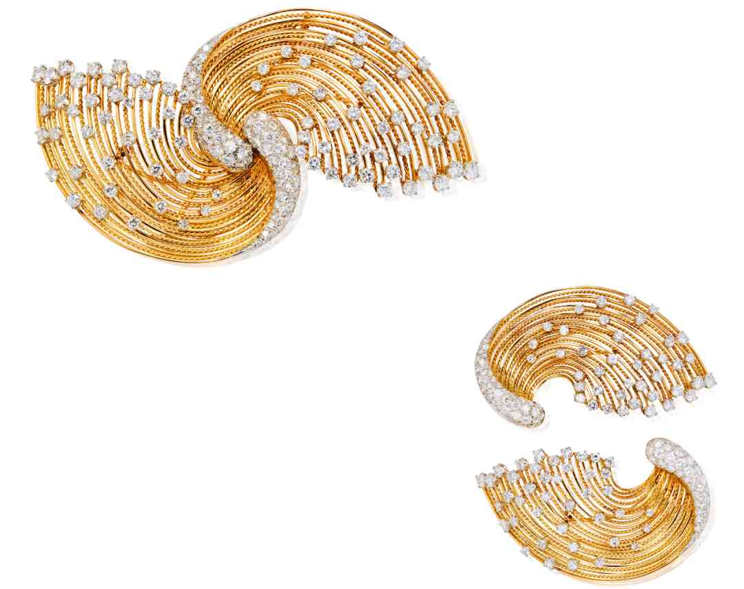 18K黃金鑲鉆石旋渦胸針 Pierre Sterlé 設(shè)計 11 月 27 日-12 月 1 日 中國嘉德北京拍賣 估價:280,000 – 420,000 人民幣