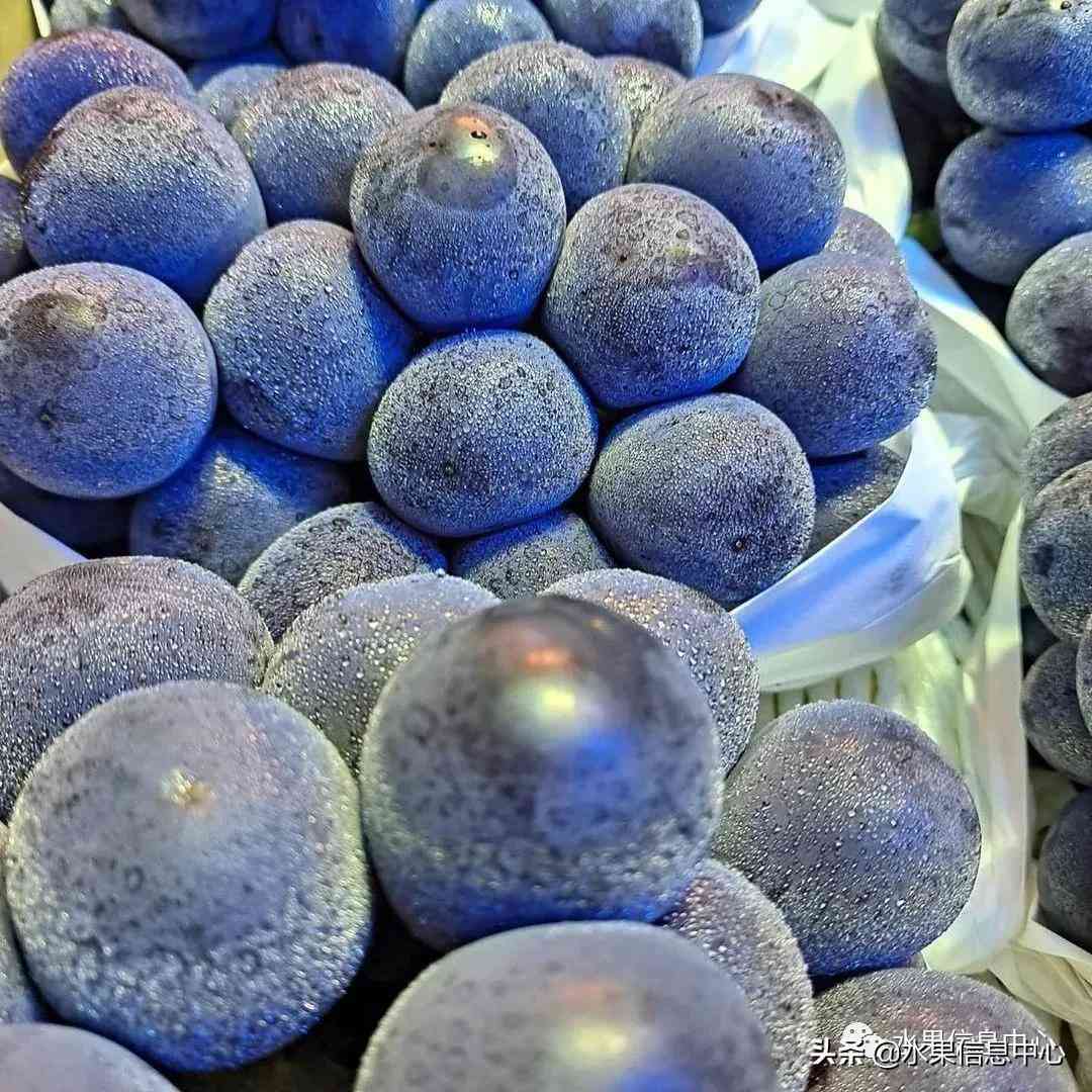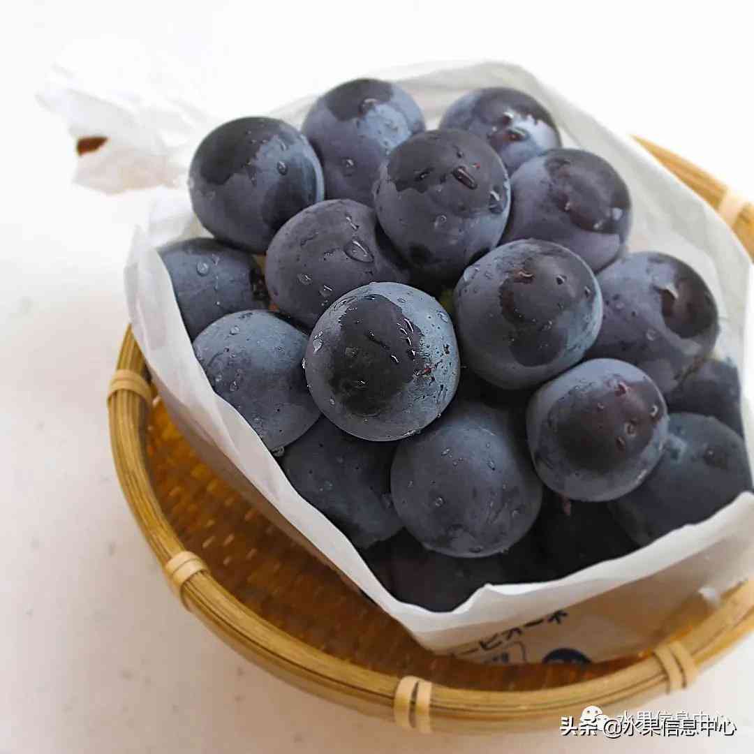 果皮呈紫黑色,表皮白色粉末為天然果粉,香氣濃郁,甜度極高,果肉脆密,飽滿多汁。數(shù)岡山最好。