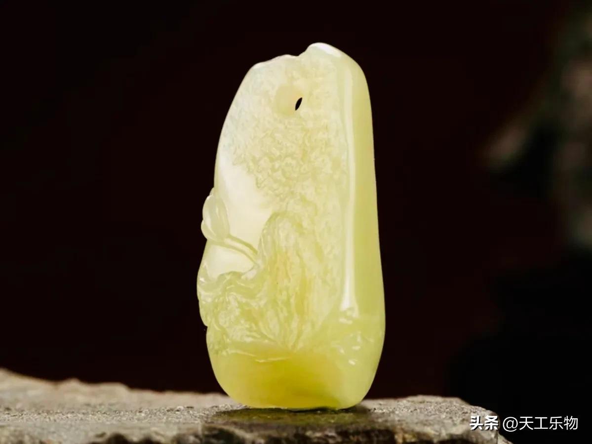 與碧玉越綠越黑的特點(diǎn)不同,黃口料的色調(diào)卻是越黃越亮。尤其有一些黑山料,仔細(xì)看還有隱隱的翠色,色彩的辨識(shí)度極高。