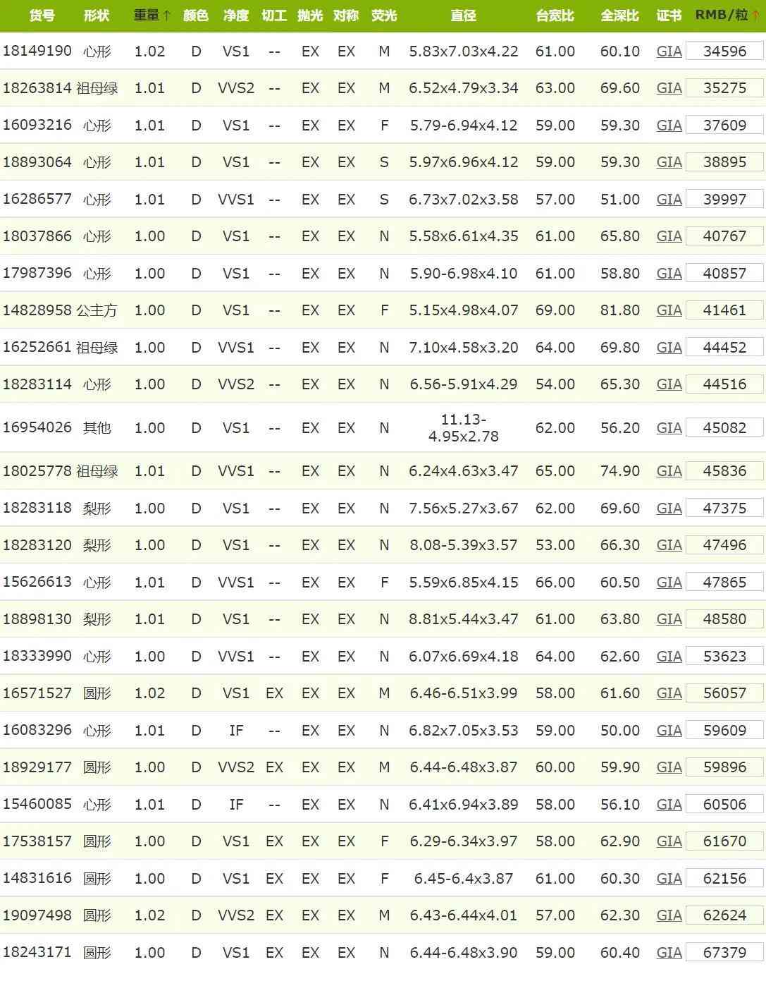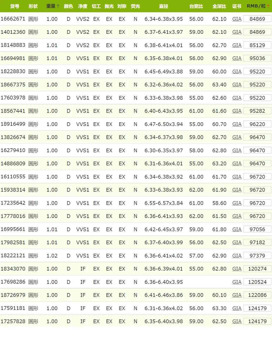 導(dǎo)讀: 2022年6月GIA證書1克拉D色鉆石價格...
