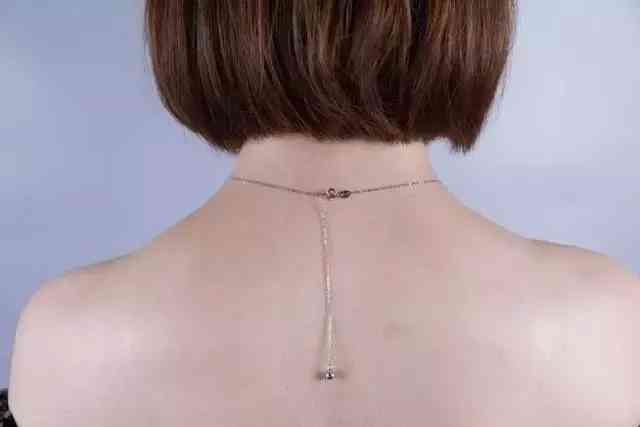 把接扣接到第二個(gè)的接口,就是長度過鎖骨3cm 左右的簡單項(xiàng)鏈,適合圓臉、方臉妹子,能夠拉長臉型。
