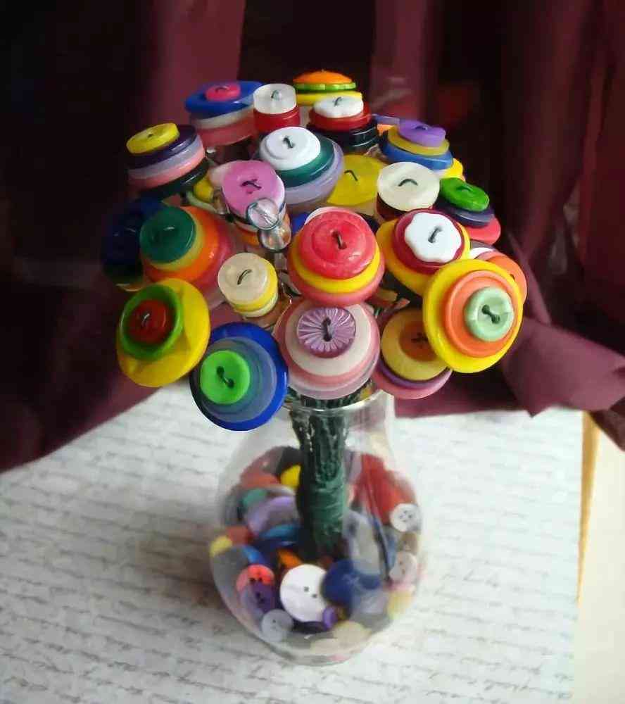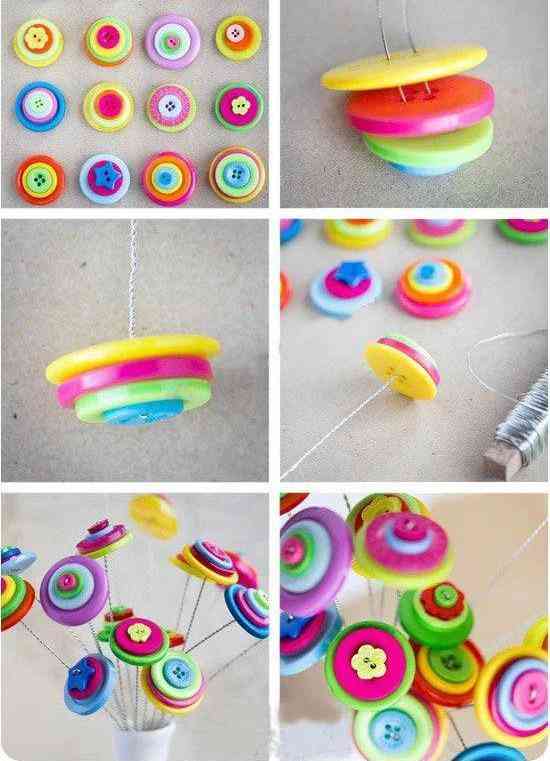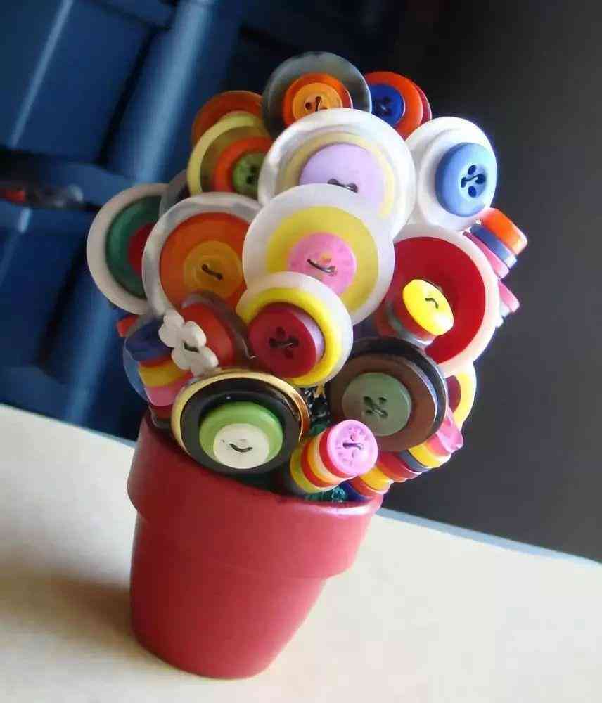 把一顆顆紐扣串起來做成花束,搭配不同的顏色也是非常好看。