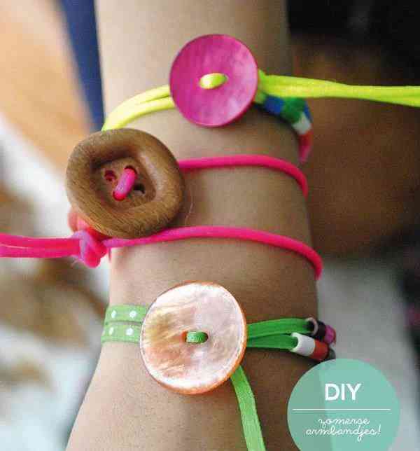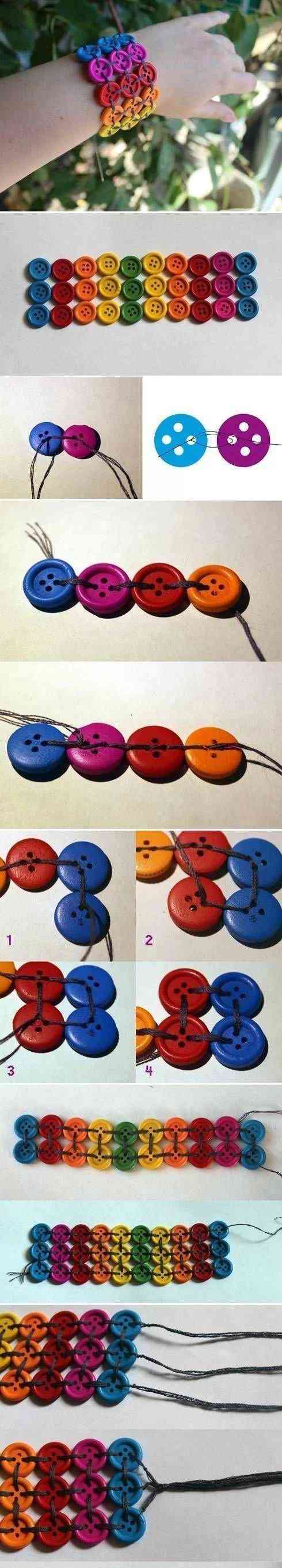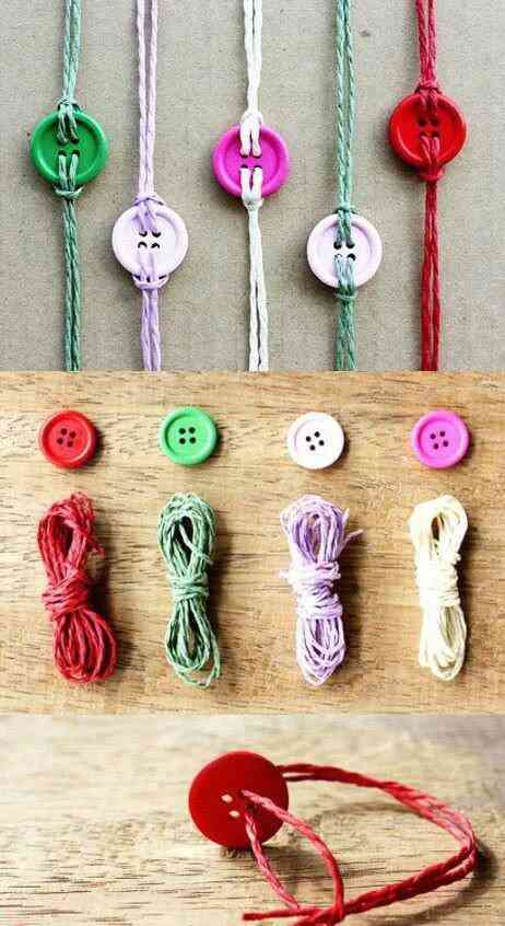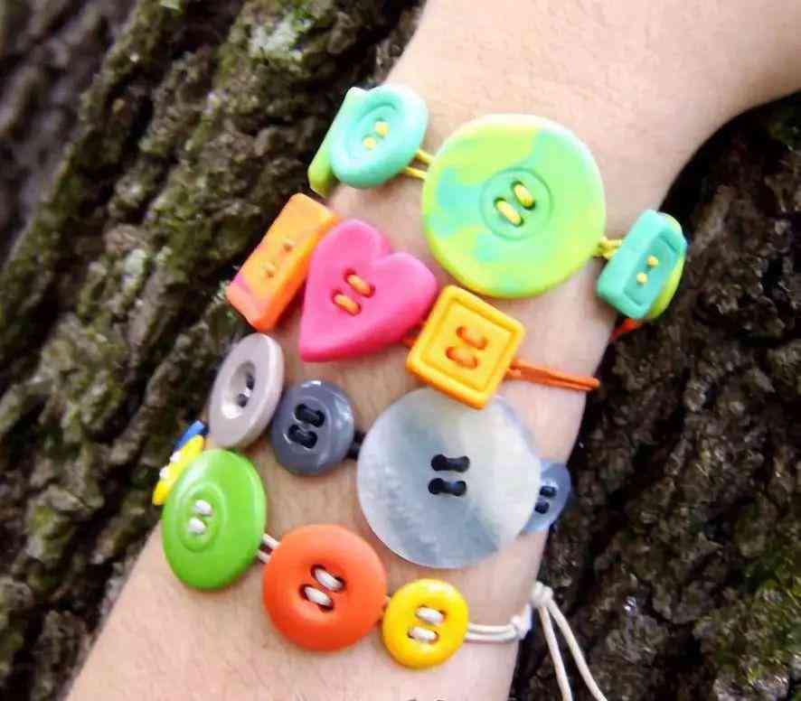將各色紐扣用棉線串連,就是一條別致的手鏈。