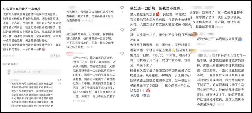 小紅書上一旦搜索中國黃金品牌,幾乎是雷點內容,風評極差。很多網友們發(fā)帖關于中國黃金品牌所銷售的黃金不純、市場上所謂的“一口價”坑人金飾的先行者等內容引起網友熱議,并表示“中國黃金是出了名的假”。