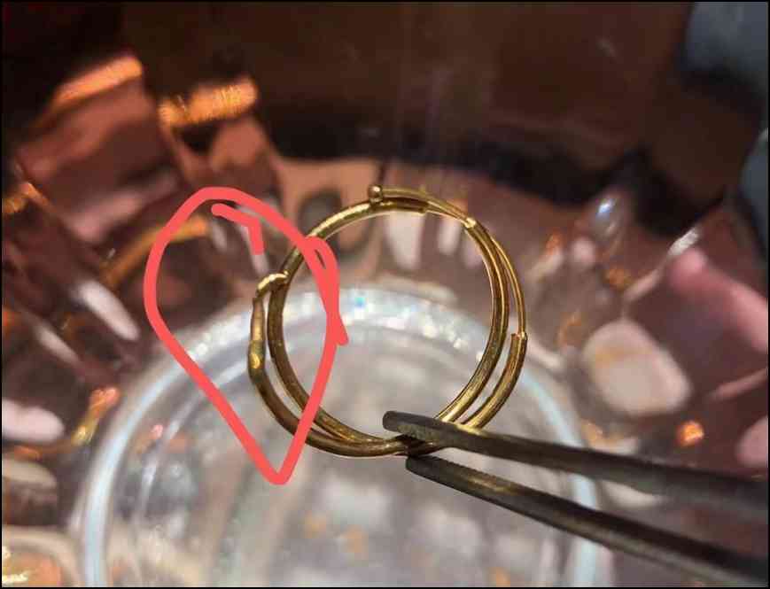 某消費者在小紅書平臺上,曬出自己在中國黃金加盟店柜臺購買的一對金耳圈,準備置換驗黃金的時候才發(fā)現(xiàn)純度不對。據消費者回憶,當時在中國黃金加盟店柜臺購買時,是按件賣,不按克賣,折后價1593元。過后一個月,準備置換其他店鋪的首飾,柜員驗完黃金后發(fā)現(xiàn),金耳圈的顏色發(fā)生變化,明顯純度不夠,諷刺的是耳釘上還印著足金999的字樣。