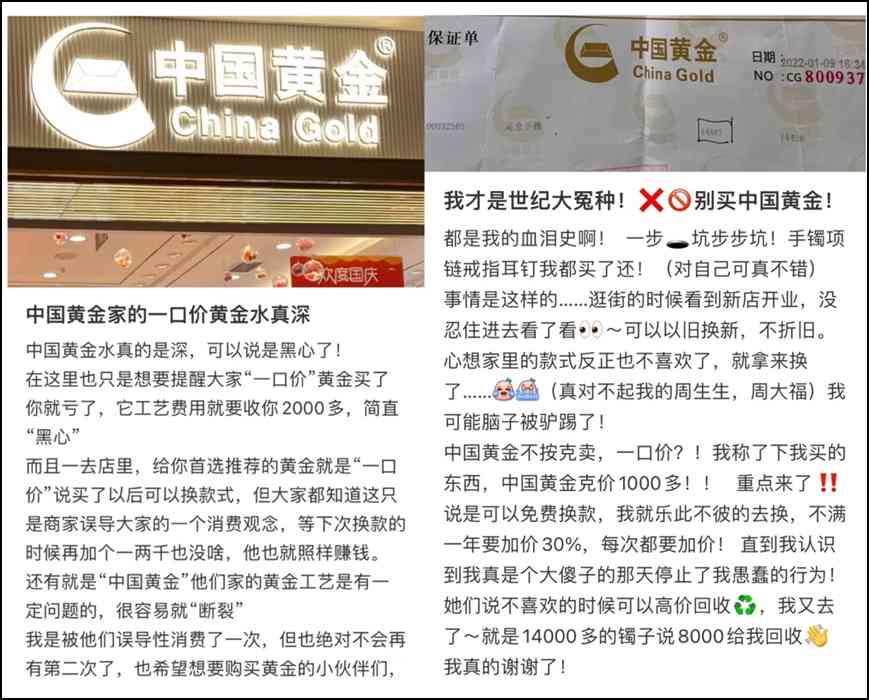 案例一:中國黃金加盟店肆意妄為,以假亂真。
