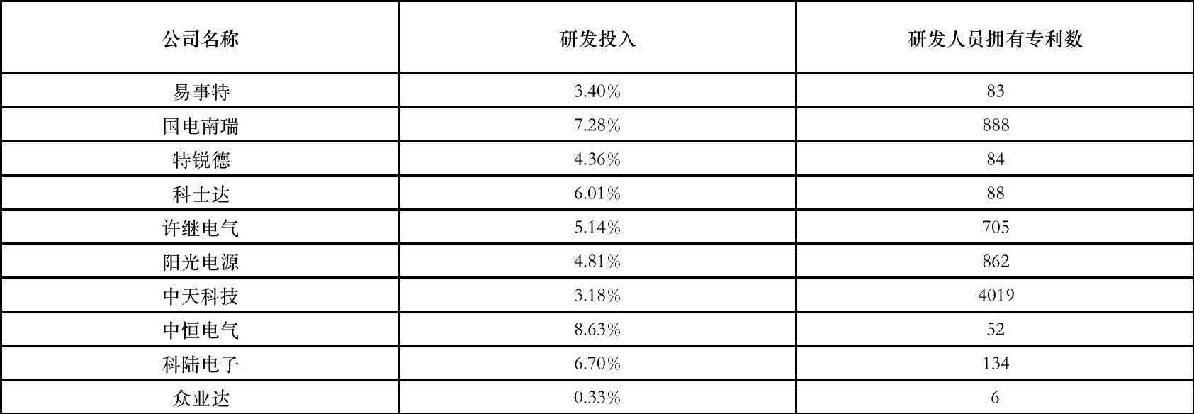 從表1的數(shù)據(jù)看,國(guó)電南瑞的研發(fā)投入較高,超過(guò)了大部分同行業(yè)的企業(yè),僅低于中恒電氣一家企業(yè),研發(fā)人員擁有的專利數(shù)也居于行業(yè)第二,但是離行業(yè)的中天科技尚有較大距離,需要繼續(xù)加大研發(fā)效率。