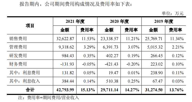 在珠寶行業(yè)中,周六福的名氣不如周大幅、周生生等老字號(hào),或許這和它的研發(fā)有關(guān)。在研發(fā)費(fèi)用上,2019年至2021年,周六福的研發(fā)費(fèi)用為266.45萬(wàn)元、402.27萬(wàn)元、984.43 萬(wàn)元,占營(yíng)收比例分別為0.12%、0.19%、0.35%,遠(yuǎn)不及同期的銷售費(fèi)用投入。