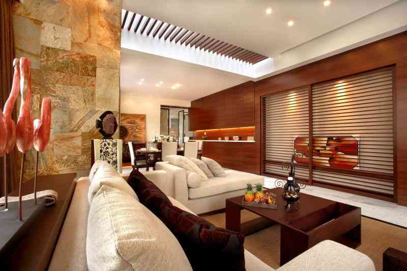 客廳是家居中最主要的公共活動空間,不管是否做人工吊頂,都必須確??臻g的高度,這個高度是指客廳應(yīng)是家居中空間凈高最大者(樓梯間除外)。這種最高化包括使用各種視錯覺處理。