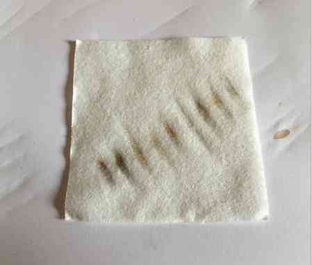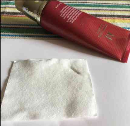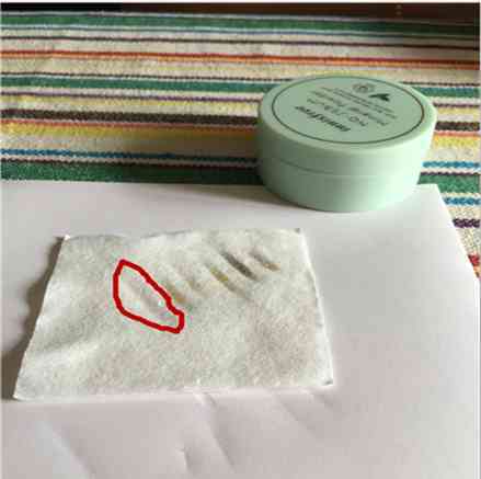 OK,大伙可以看看,經(jīng)過反復(fù)的摩擦,化妝棉上出現(xiàn)了一點點黑色,但是顏色并不深有木有?