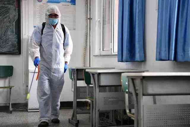 天津中學(xué),防疫人員對考場進(jìn)行消毒(圖源:新華社)