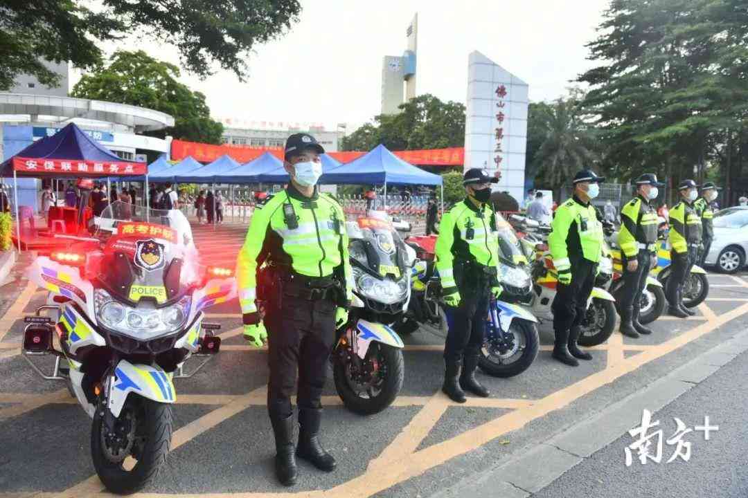 廣東佛山三中考點,帥氣的鐵騎護(hù)航高考(攝影:戴嘉信 )