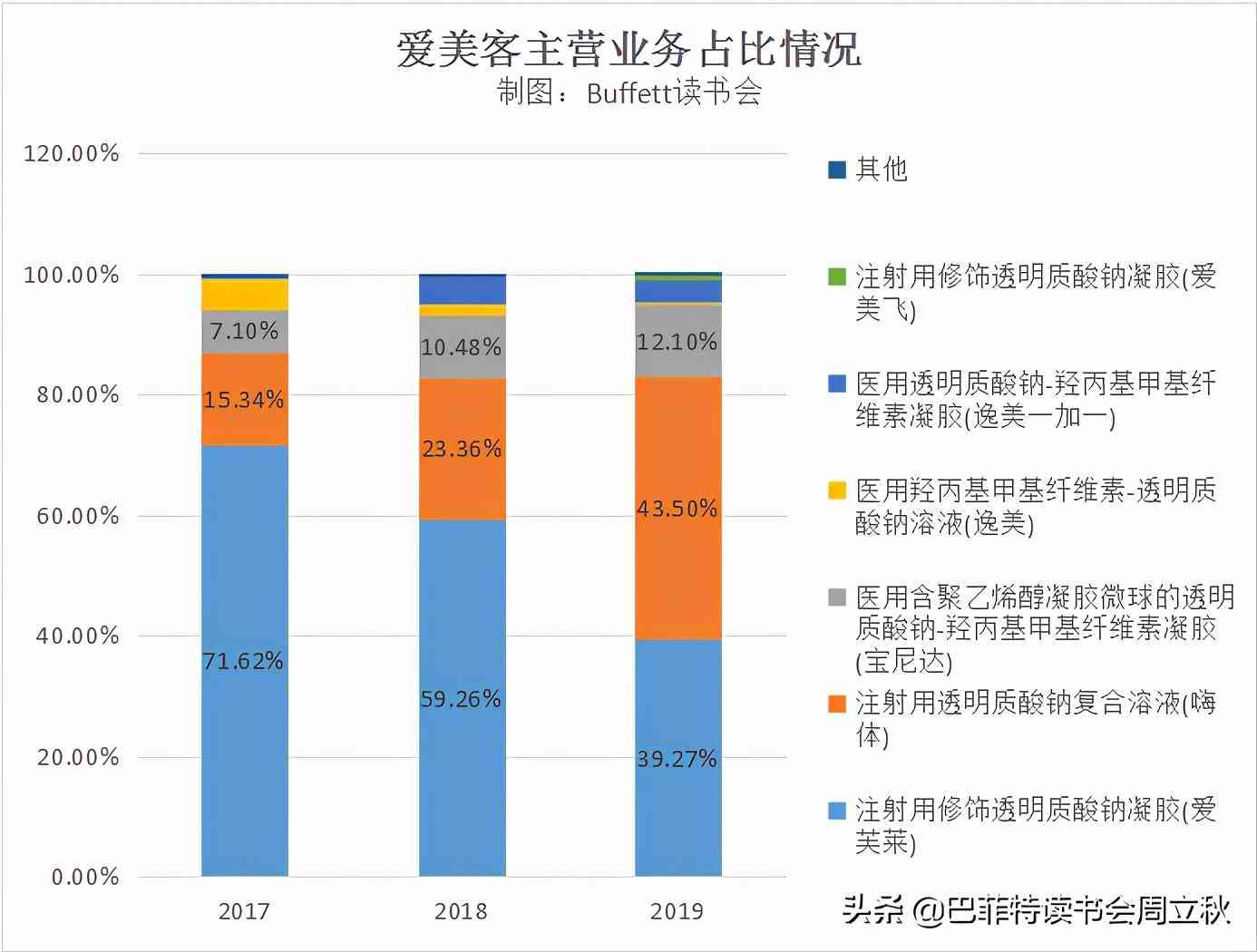 愛美客,前身北京英之煌生物科技有限公司成立于2004年6月,目前99%以上的收入來自醫(yī)美產(chǎn)品,包括醫(yī)美填充劑和埋線產(chǎn)品,公司是國內(nèi)生物醫(yī)用軟組織修復(fù)材料領(lǐng)域的創(chuàng)新型領(lǐng)先企業(yè),立足于生物醫(yī)用材料的研發(fā)和轉(zhuǎn)化,致力于重組蛋白和多肽等生物醫(yī)藥的開發(fā),已成功實現(xiàn)注射類透明質(zhì)酸鈉系列產(chǎn)品及聚對二氧環(huán)己酮面部埋植線的產(chǎn)業(yè)化。