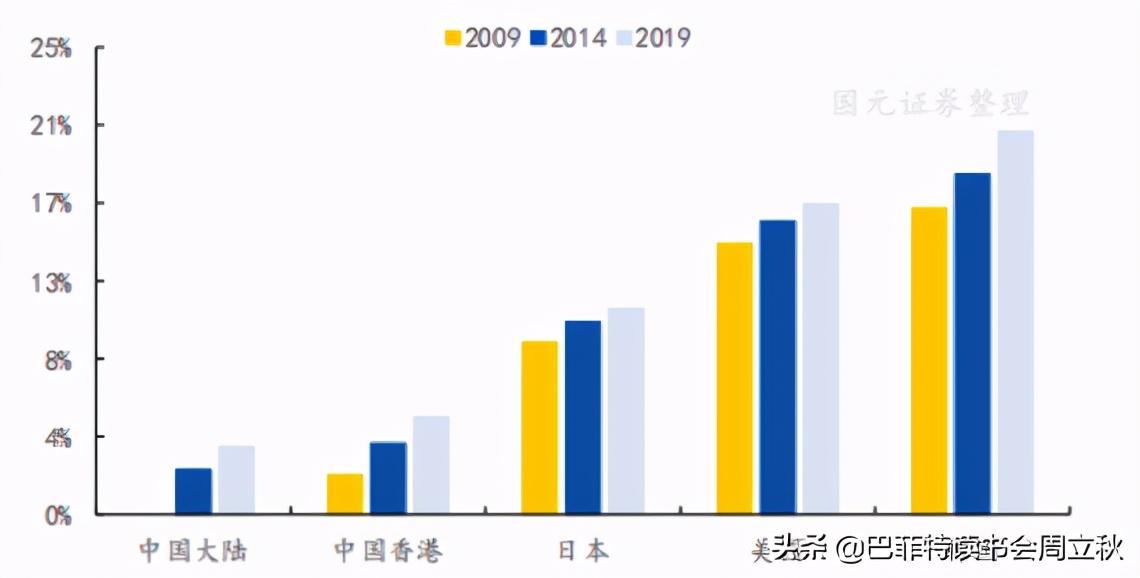 根據(jù)艾瑞咨詢的預(yù)測,2019年中國醫(yī)療美容市場規(guī)模達到1769億元,增長率放緩至22.2%;2019年中國醫(yī)美用戶1367.2萬人,預(yù)測2023年醫(yī)美用戶達2548.3萬人(19年至23年CAGR為16.8%)。中國在2017年已經(jīng)成為全球第二大醫(yī)美市場,亦是全球增速最快的國家之一。有望在2021年超越美國,成為醫(yī)美大市場,于2023年市場規(guī)模達到3115億元。2014年,醫(yī)美在中國大陸滲透率僅為2.4%,而同期,醫(yī)美在中國香港滲透率為3.8%,在日本滲透率為10.3%,在美國滲透率為15.7%,韓國是全球醫(yī)美滲透率高的國家之一,醫(yī)美行業(yè)在韓國政府的支持下發(fā)展為國家支柱產(chǎn)業(yè),在此背景下,2014年,韓國醫(yī)美項目滲透率高達18.2%。過去五年,中國醫(yī)美項目滲透率有了顯著提升,從2014年的2.4%上升到2019年的3.6%。但與美國、日本、韓國等地區(qū)仍有顯著差異,未來,中國醫(yī)美項目滲透率增長空間廣闊。
