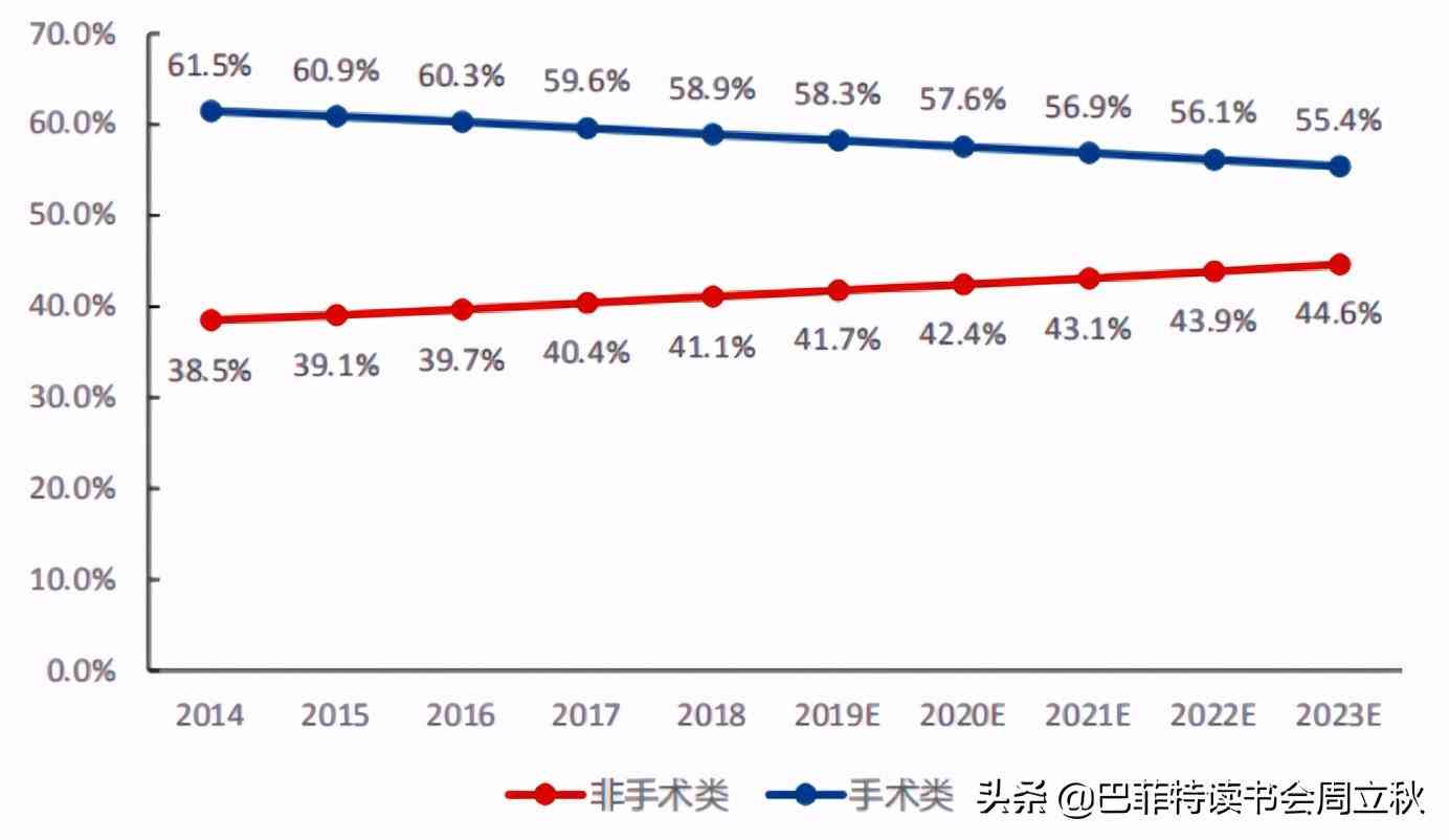 中國醫(yī)美行業(yè)手術(shù)類及非手術(shù)類收入占比