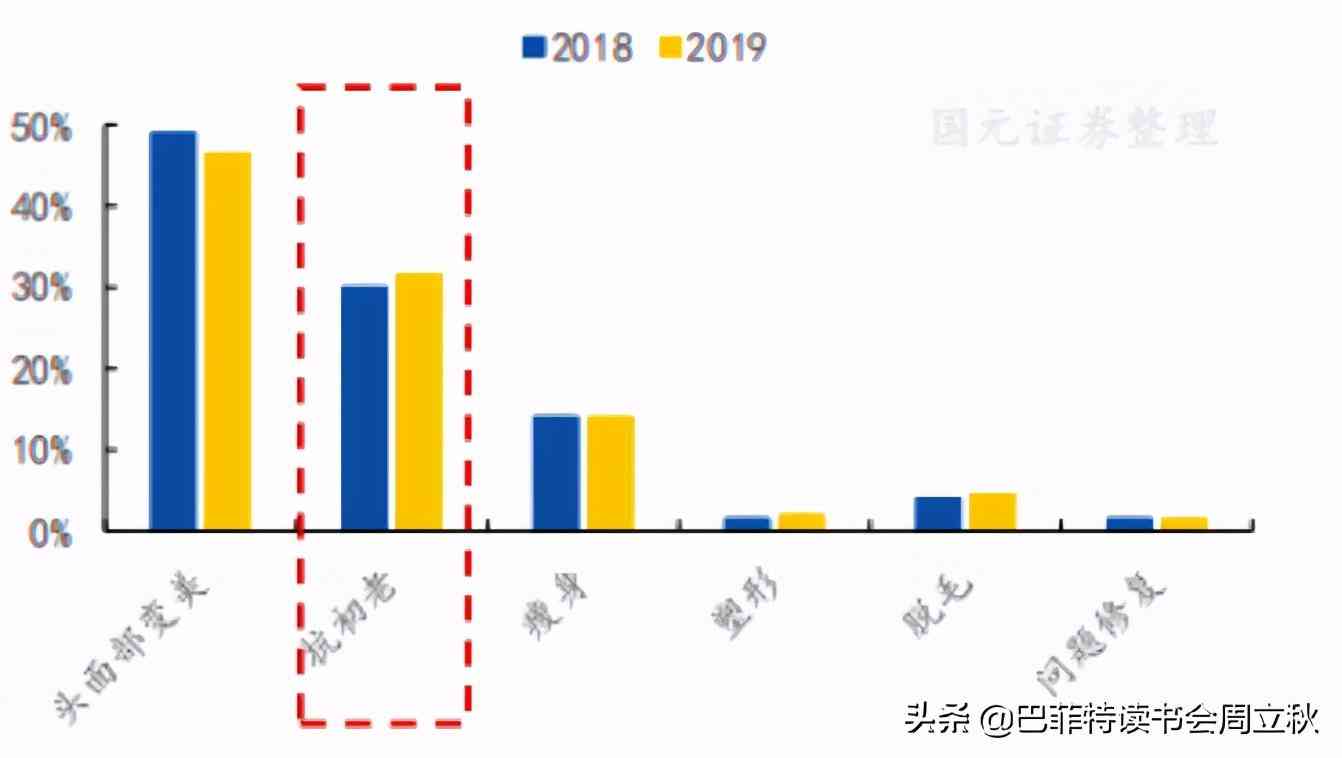 3、消費者抗衰意識增強,抗老年齡段下移。根據(jù)中國香精香料化妝品工業(yè)協(xié)會發(fā)布的數(shù)據(jù),目前女性最關(guān)心、最熱門的保養(yǎng)服務(wù)項目就是抗衰老保養(yǎng),其在所有項目中的提及率高達72.2%。女性抗老認知已經(jīng)從25歲抗老轉(zhuǎn)變?yōu)?3歲甚至20歲抗老。根據(jù)福布斯數(shù)據(jù)統(tǒng)計,中國20歲到24歲的都市女性中,五分之二(39%)都使用抗衰老產(chǎn)品,尤其是抗皺產(chǎn)品已成為剛需。