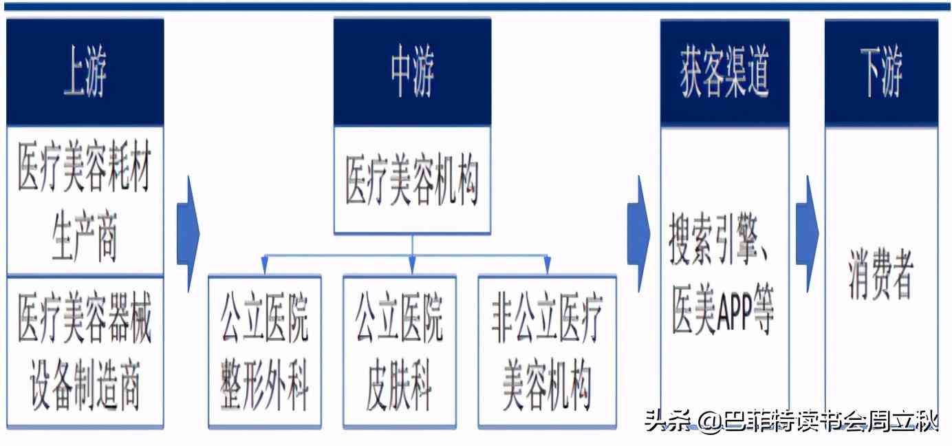 6、中游服務(wù)整體利潤空間高,上游制造單體利潤空間大。醫(yī)療美容行業(yè)的產(chǎn)業(yè)鏈主要包括三個核心環(huán)節(jié):1)上游原料及藥械供應(yīng)商;2)中游服務(wù)機構(gòu);3)下游獲客平臺/渠道。