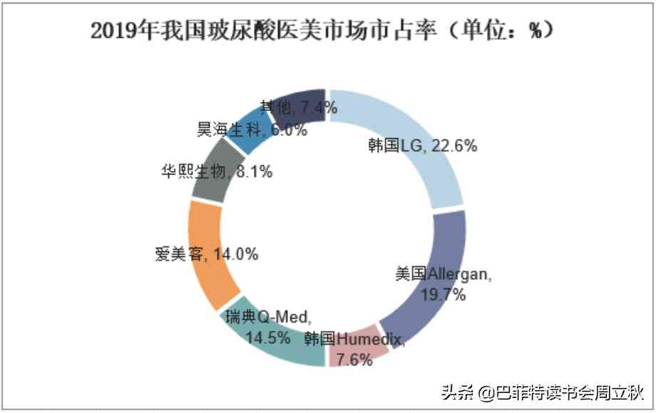 7、玻尿酸產(chǎn)品的市場格局。透明質(zhì)酸又名玻尿酸,在人體內(nèi)的存在有透明質(zhì)酸,有著潤滑關(guān)節(jié),以及皮膚保濕功能,皮膚也含有大量的透明質(zhì)酸。人類皮膚成熟和老化過程也隨著透明質(zhì)酸的含量和新陳代謝而變化,它可以改善皮膚營養(yǎng)代謝,使皮膚柔嫩、光滑、增加彈性、防止衰老,在保濕的同時又是良好的透皮吸收促進劑。小分子的玻尿酸可以用來補水;中分子和大分子的玻尿酸在臨床中被用來填充凹陷或者調(diào)整面部輪廓。