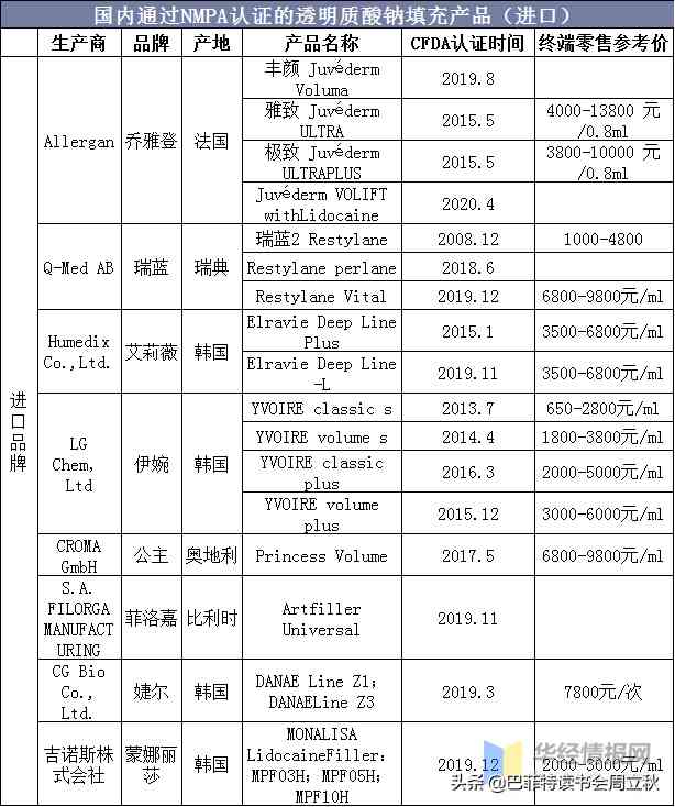 10、目前所在機構(gòu)有用到愛美客的寶尼達作作為替代品。在上海某化妝品公司的朋友同時反饋,在其代工的面膜產(chǎn)品中用到了小分子HA,國產(chǎn)的主要是華熙生物和山東焦點,就品質(zhì)而言,QPFC日本丘比的更好。