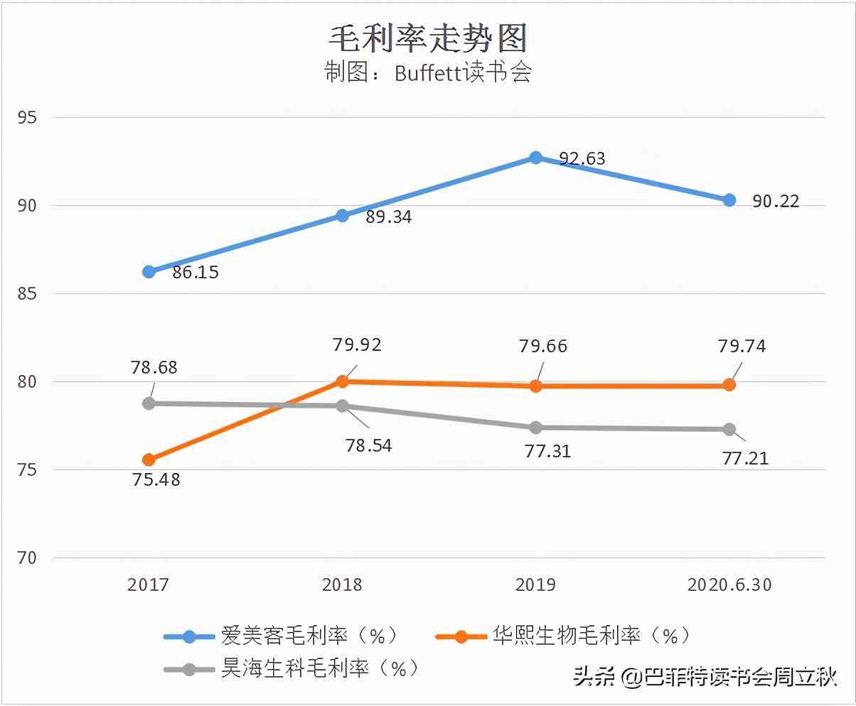 從毛利率來看,愛美客>華熙生物、昊海生科。這是由于3家公司產(chǎn)品結(jié)構(gòu)的不同帶來毛利率差異。愛美客的毛利率最高,其99%+的收入來自毛利率在90%左右的醫(yī)美類產(chǎn)品,而華熙生物和昊海生物業(yè)務(wù)中受毛利率較低板塊影響,從而影響了公司的綜合毛利率水平。(昊海生科的整形美容與創(chuàng)面護理產(chǎn)品2019年毛利率為90.38%)