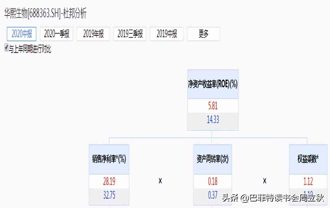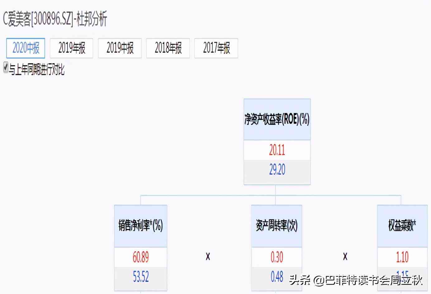 愛美客2020年上半年凈資產(chǎn)收益率為20.11%,同比下降9.09個百分點,下降主要的原因就是資產(chǎn)周轉(zhuǎn)率有所下降,這和疫情有關(guān),下半年應(yīng)該可以恢復(fù)。
