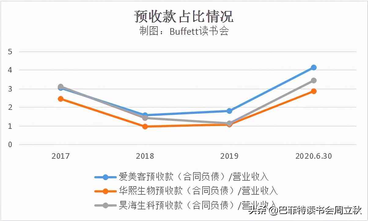 從預(yù)收款占比來看,三家公司占比都不高,但都有上升趨勢,這是好現(xiàn)象。(這是比率是對現(xiàn)金流的一個補充,說明東西還沒有出去,但是現(xiàn)金已經(jīng)回來了,占比越高越好。)