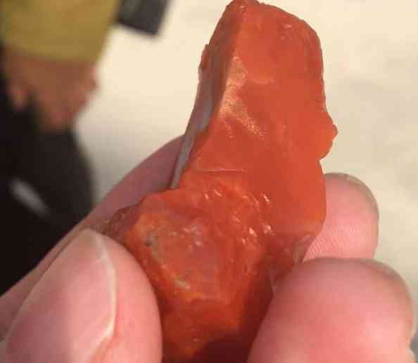 紅碧石又稱烏石,也是石英類,與南紅礦物是伴生的關(guān)系,但紅碧石不能作為珠寶的材料,它質(zhì)地發(fā)干且不透光,無玉性。用強光透射不透光。