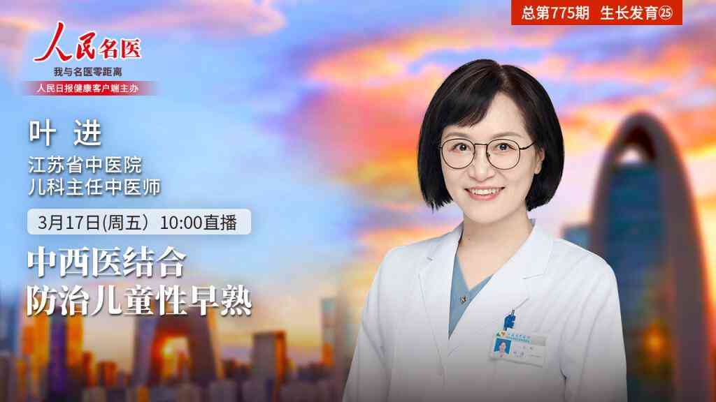 中西醫(yī)結合防治兒童性早熟 孩子進入青春期后,家長該如何助力孩子科學長個?當孩子身高異常時,家長怎樣才能盡早識別孩子性早熟或矮???中西醫(yī)結合治療性早熟有哪些優(yōu)勢和成效?3月17日(周五)10:00-11:00,《人民名醫(yī)》直播總第775期、生長發(fā)育第25期,邀請江蘇省中醫(yī)院兒科主任中醫(yī)師、中國中西醫(yī)結合學會兒科專業(yè)委員會副主任委員葉進教授,與各位網友分享兒童性發(fā)育和性早熟方面的見解,助力兒童青少年健康成長。