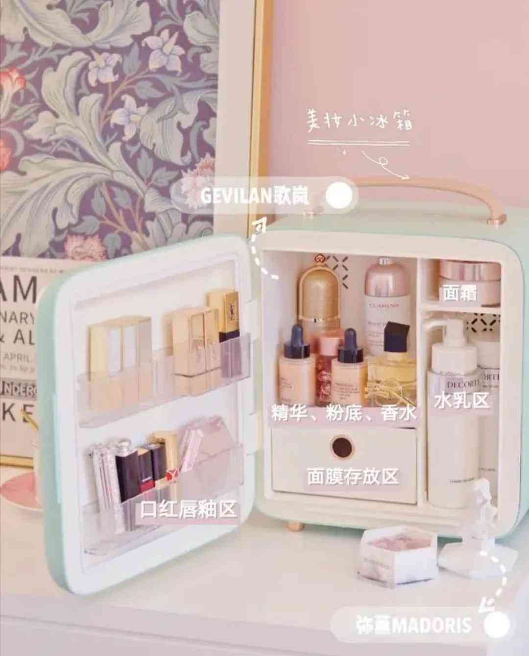 這個小冰箱是10度恒溫的,能保持成分更穩(wěn)定,非常適合保存護(hù)膚品和彩妝。
