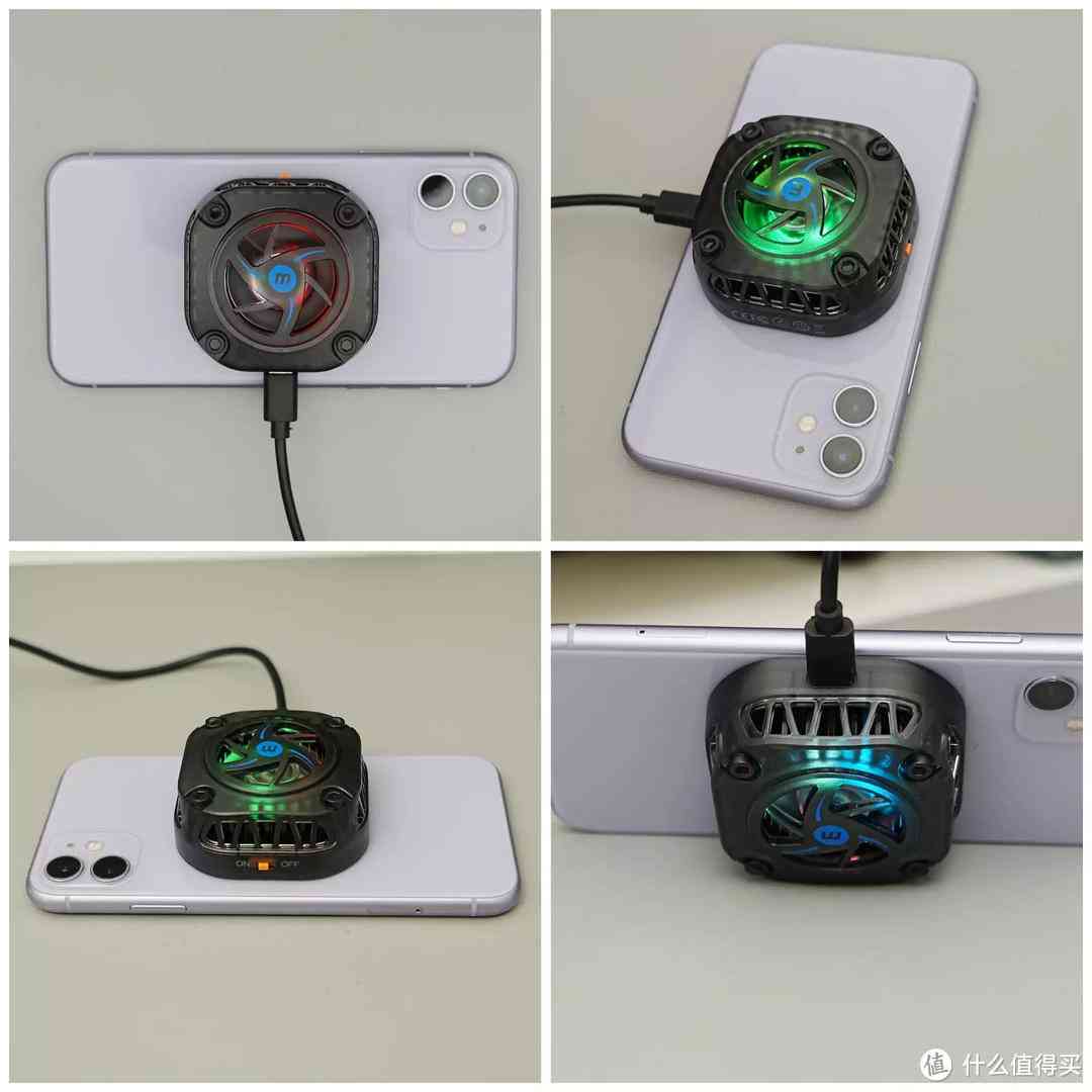 摩米士磁吸散熱器頂部和四邊都有出風(fēng)口,同時(shí)還自帶RGB燈光特效,非常好看,玩游戲的氛圍感十足。使用附贈(zèng)的電源線連接到充電頭或者充電寶上,開啟散熱器開關(guān)就可以啟動(dòng)制冷散熱了。