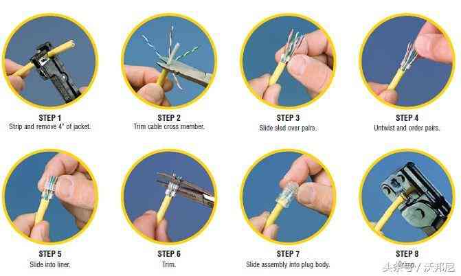 附上一張制作網(wǎng)線水晶頭的方法圖示。