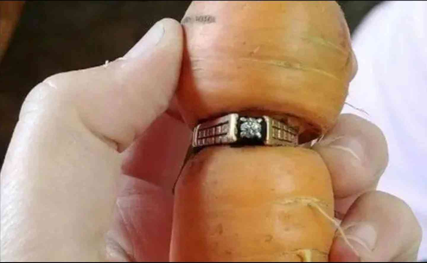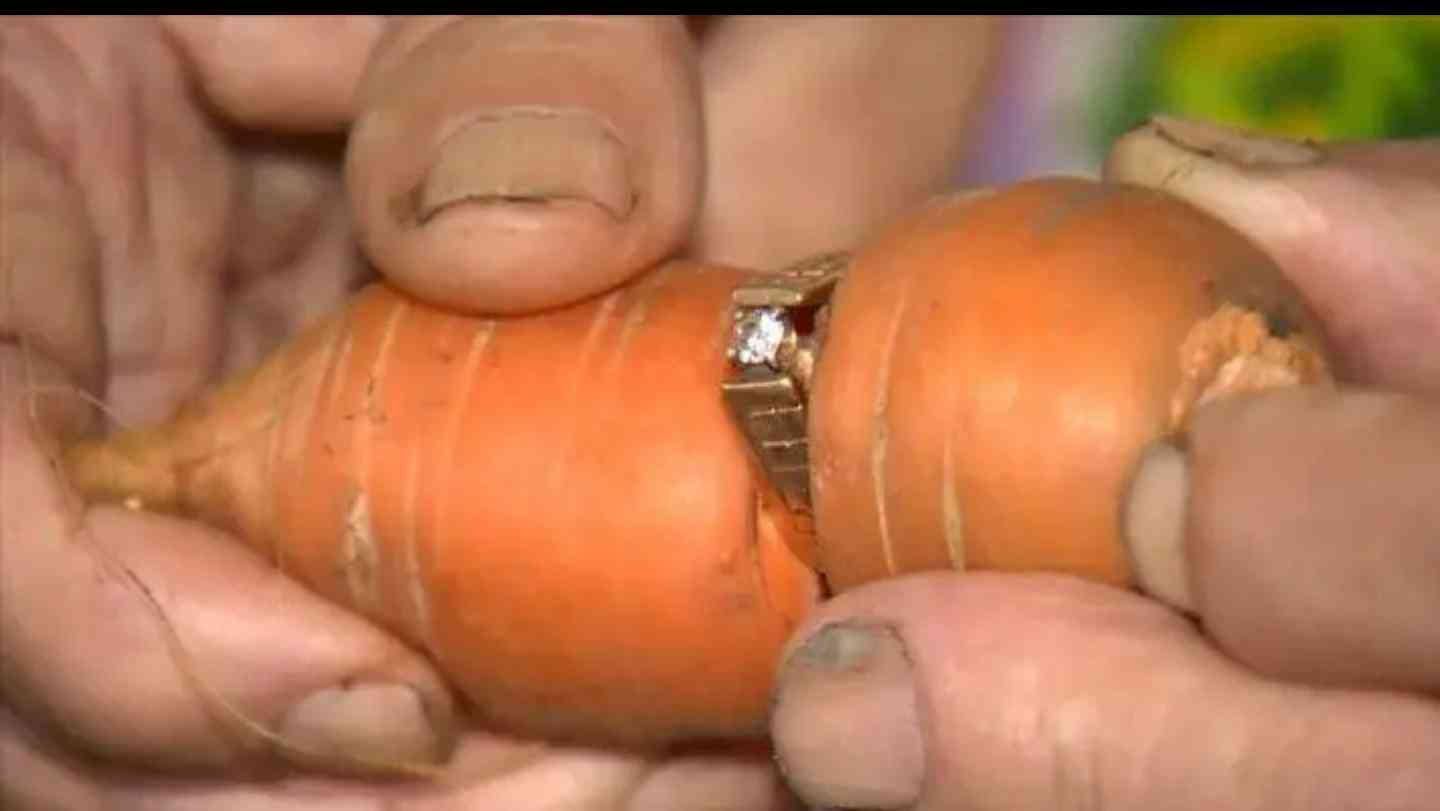 一枚鉆石戒指已經深深陷入胡蘿卜的腰間(圖片來自頭條原創(chuàng)者文章摘圖)