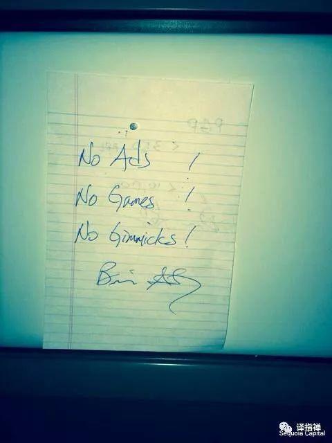 WhatsApp兩位聯(lián)合創(chuàng)始人之一的Brian Acton發(fā)自內(nèi)心地討厭廣告,并在另一位聯(lián)合創(chuàng)始人暨首席執(zhí)行官Jan Koum的桌面上貼了張近乎是WhatsApp創(chuàng)立原則的“無廣告,無游戲,無噱頭”宣言紙條。
