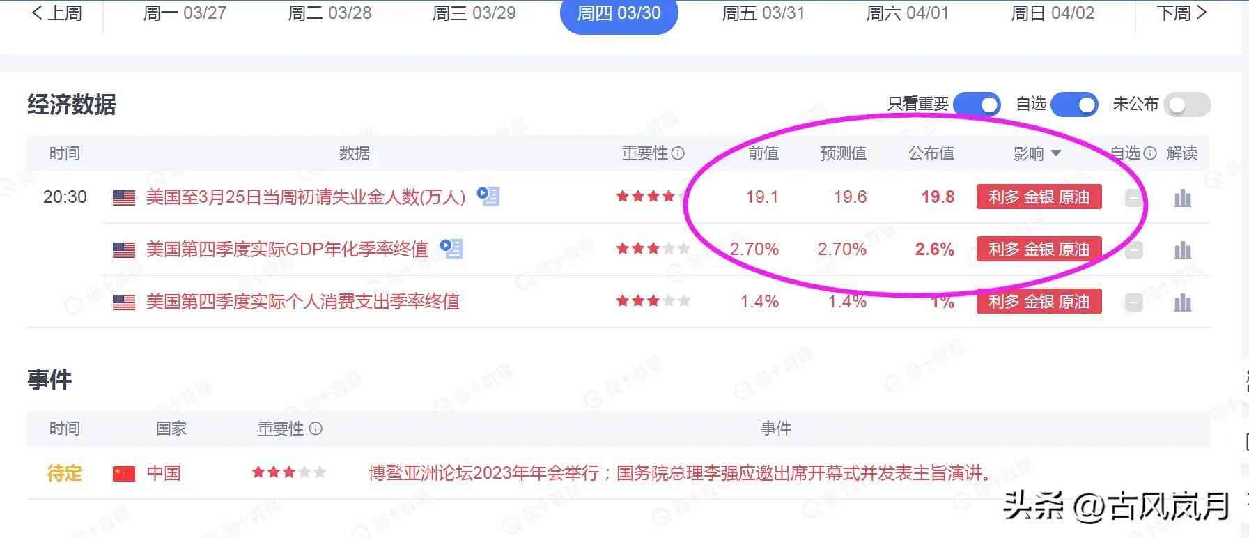 一,基本面,金價(jià)周四上漲近1%,主要源于美元走軟和美債收益率下降推動(dòng)了黃金上行,美元最近走勢(shì)疲軟完全不符合它老大的段位,昨天周四再度下跌,現(xiàn)貨黃金小幅走強(qiáng),本周波動(dòng)幅度趨于收窄。盡管最近對(duì)全球銀行體系的擔(dān)憂有所緩解,但是市場(chǎng)聚焦美聯(lián)儲(chǔ)政策來判斷未來金融危機(jī)的可能性,昨天短期數(shù)據(jù)顯示,美國第四季度國內(nèi)生產(chǎn)總值(GDP)增長2.6%以及初請(qǐng)失業(yè)金人數(shù)錄得19.8萬都不及預(yù)期,利空美元。目前美聯(lián)儲(chǔ)青睞的通脹指標(biāo),市場(chǎng)等待今天即將公布的美國PCE數(shù)據(jù),研判美聯(lián)儲(chǔ)未來利率路徑。市場(chǎng)預(yù)計(jì),美國2月份核心PCE年率料持平前值4.7%,通脹下降的過程緩慢且痛苦。要滿足當(dāng)前市場(chǎng)對(duì)美聯(lián)儲(chǔ)年內(nèi)降息的預(yù)期,該數(shù)據(jù)必須大幅遜于預(yù)期才能支持做空美元的投資者。原油市場(chǎng),油價(jià)周四上漲超2%,因美國原油庫存下降和伊拉克庫爾德斯坦地區(qū)暫停出口帶來支撐,蓋過了俄羅斯供應(yīng)削減幅度小于預(yù)期的壓力,伊朗支持國際法院關(guān)于美國凍結(jié)伊朗企業(yè)資產(chǎn)不合法的裁決,或加劇美伊關(guān)系緊張,增加伊朗原油重返市場(chǎng)阻礙,也提振了油價(jià)