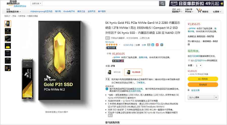 目前SK Hynix Gold P31系列M.2固態(tài)硬盤(pán)已上架美國(guó)亞馬遜商城,喜歡的用戶們可以通過(guò)海淘渠道購(gòu)買(mǎi)。新出的2TB容量版本售價(jià)為1856.05人民幣,1TB容量版本售價(jià)為955.68人民幣。