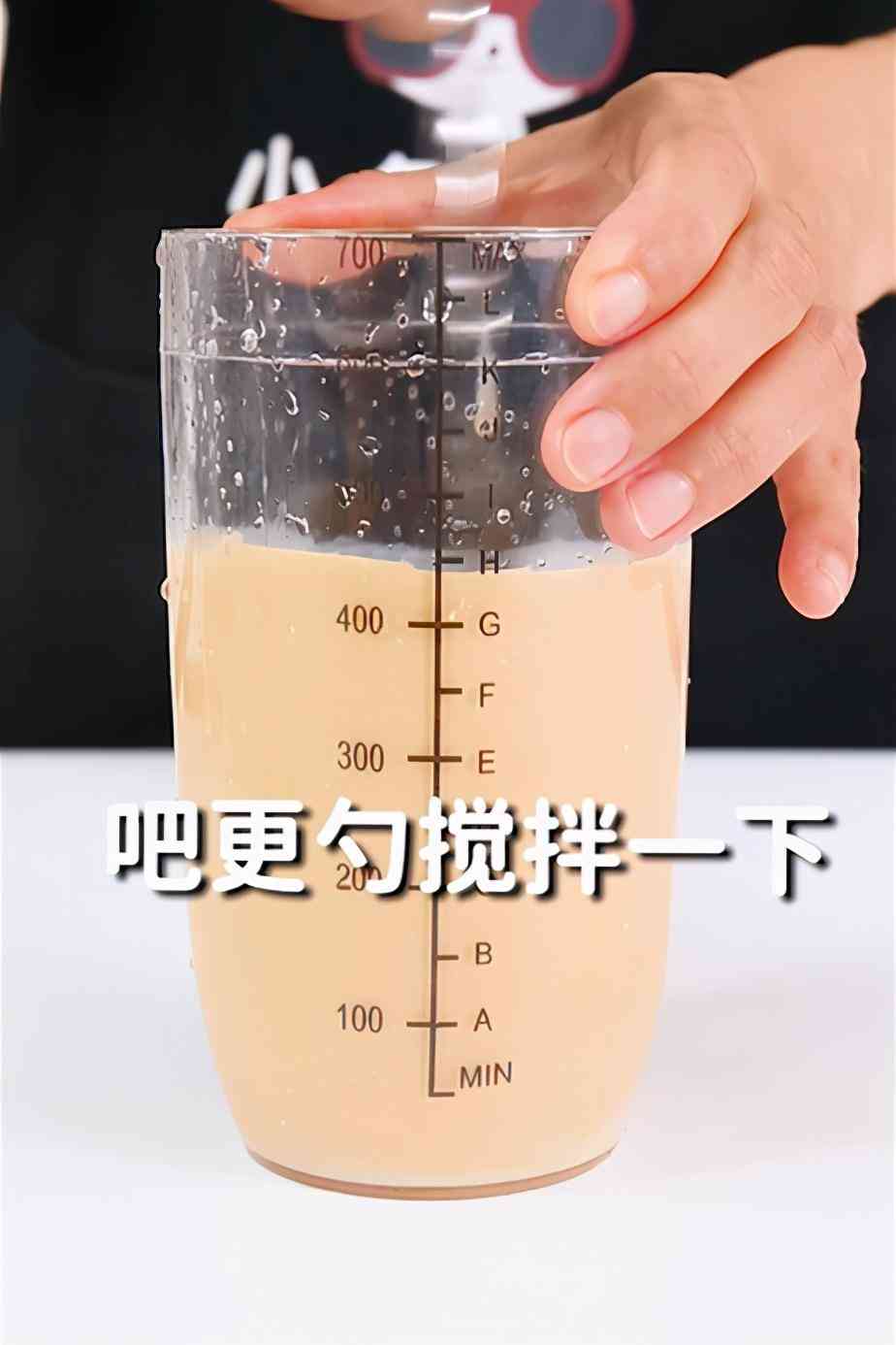 第2步,補熱水到雪克杯的400毫升刻度線