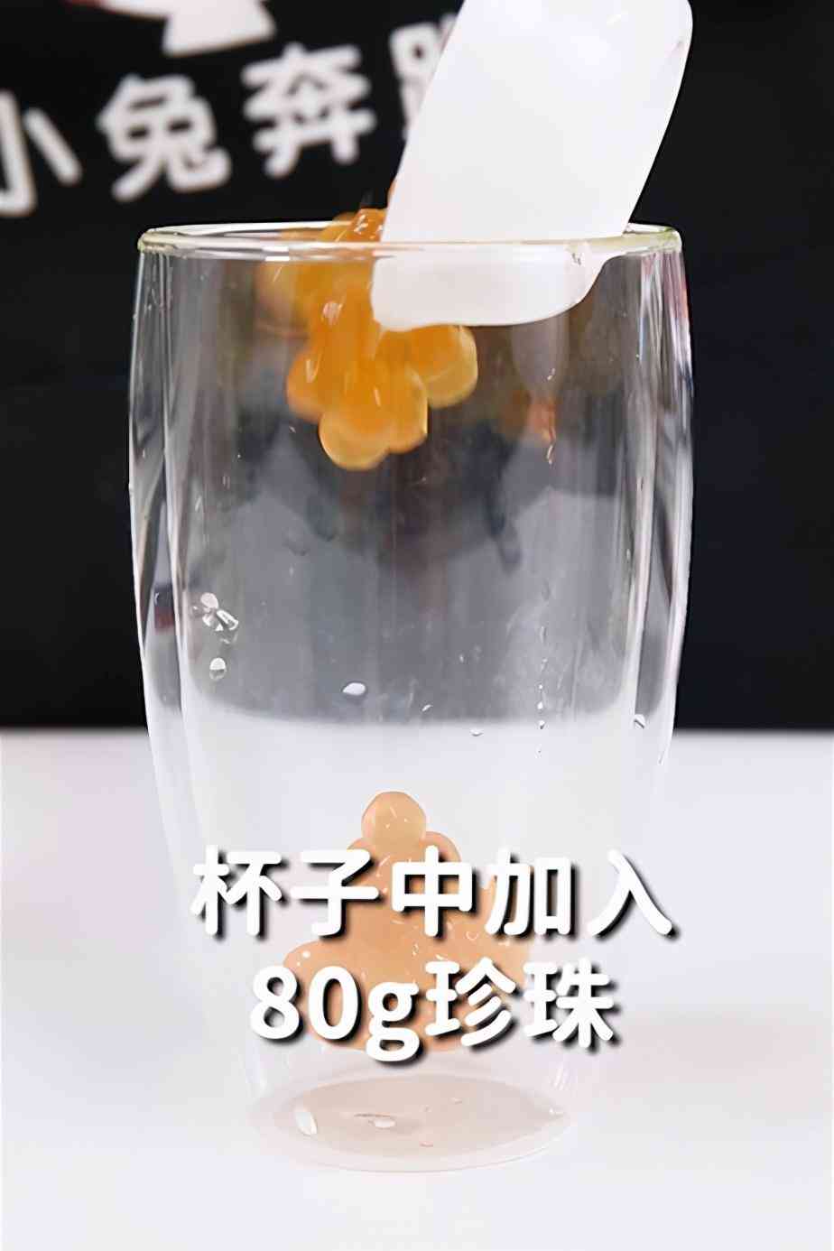第4步,在出品杯中加入80克珍珠