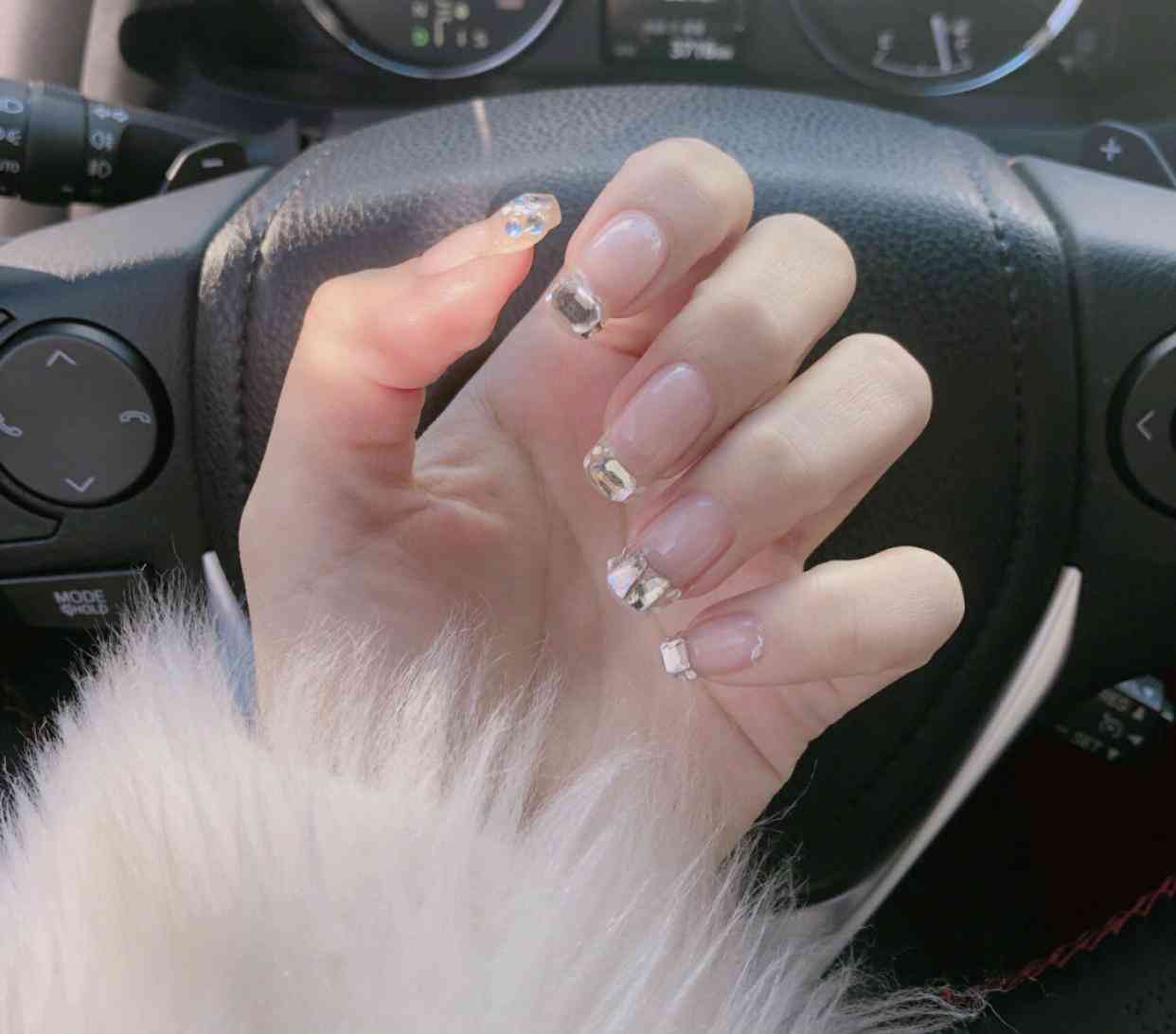說到了鉆石法式美甲,小編還想給大家分享另一款鉆石法式美甲,也是當(dāng)下火遍了各個(gè)社交平臺(tái)的一款美甲,看圖片相信大家就不陌生了,這種用異形鉆打造的法式,會(huì)比常規(guī)的鉆石法式更張揚(yáng)一些,大膽的用到了一些比較大顆的異形鉆,在造型上非常搶眼。