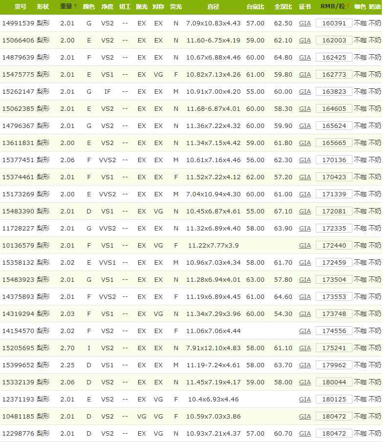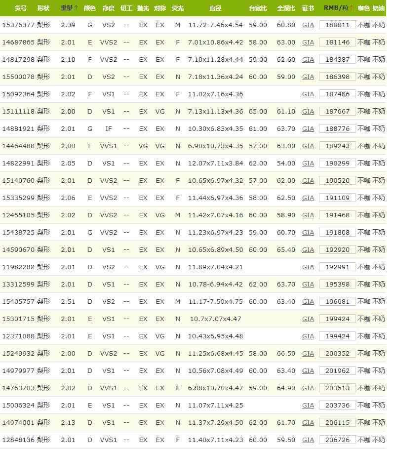 GIA證書 2克拉水滴形鉆石價(jià)格表