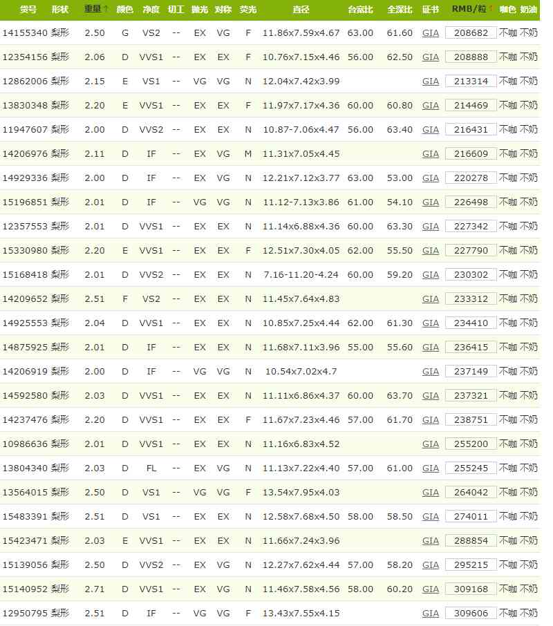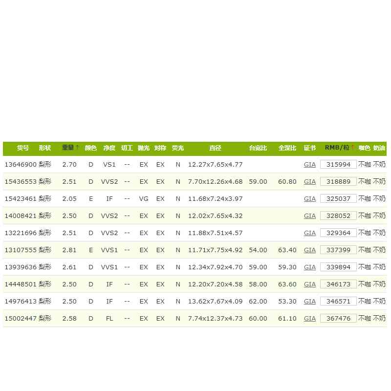 導(dǎo)讀: GIA證書 2克拉水滴形鉆石價(jià)格表顏色:D~N 凈度:FL~VS2 不咖 不奶可 深圳,香港 兩地交付表中價(jià)格有折扣...
