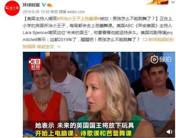 《早安美國》欄目主持人Lara談到喬治小王子喜歡跳芭蕾時直接笑場,更公然嘲諷道:“咱就看看喬治,到底能堅持跳芭蕾多久吧!”
