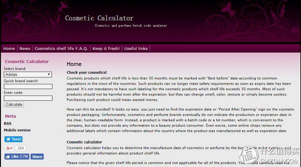 Cosmetic Calculator是美國一個化妝品生產批號查詢網站,其收集了以美國品牌居主,也包括小部分歐洲、日韓品牌,共計380余個,例如。十分小眾的美國品牌都可以在這個網站查詢到,但是對于除美國外其他國家的品牌收錄較少,比如日本常見的資生堂、haba、freeplus、curel等均不曾收錄。
