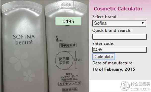 ▼SOFINA是380+個品牌中為數(shù)不多的日本品牌之一,下圖是一支SOFINA的日間乳液,生產批號位于管裝的頂端密封處,批號為0495,查詢可以得出其生產日期是2015年2月18日。
