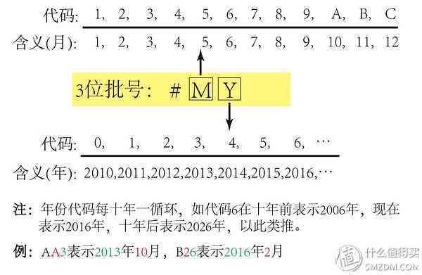 補充:除了上述三位碼表示生產年月的方式,還有一種更直接的表示年月的方法,部分日系小品牌采用這種方式,即為“年份的最后一個數(shù)字+2位的月份”,例如601表示2016年1月,412表示2014年12月,這三個數(shù)字前面或后面有字母表示產地。