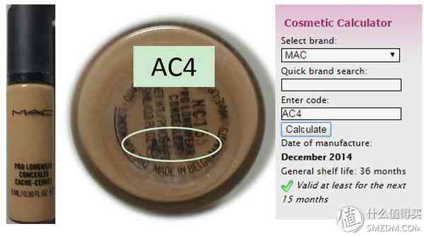 ▼MAC的遮瑕,瓶底顯示批號為AC4,表示生產日期為2014年12月。