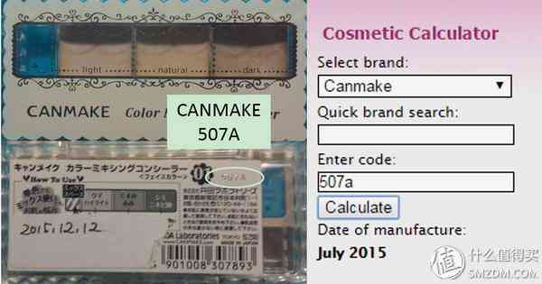 ▼如CANMAKE的三色遮瑕膏,其批號為507A,則表示其生產日期為2015年7月。