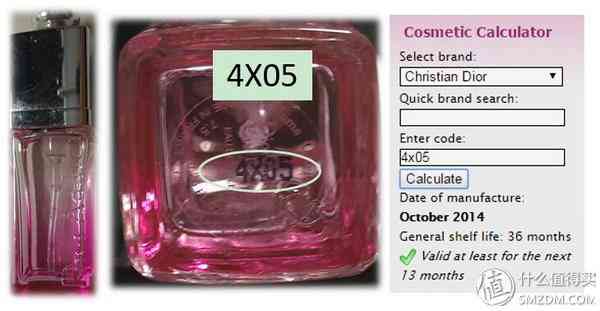 ▼迪奧Dior的香水,其批號為4X05,位“4”表示年份2014年,第二位“X”對應月份10月,則該批號代表2014年10月。