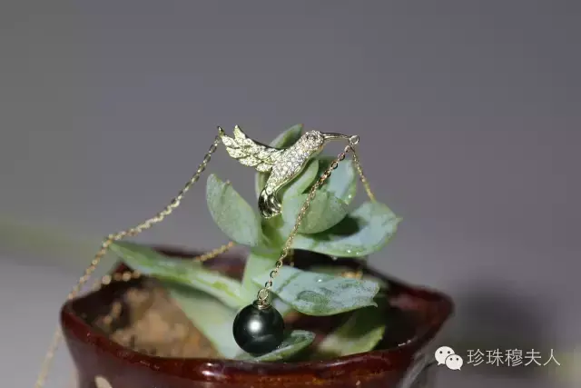 鑲嵌靈動(dòng)的小鳥和大溪地黑珍珠放在一起,增添了很多趣意和韻味。